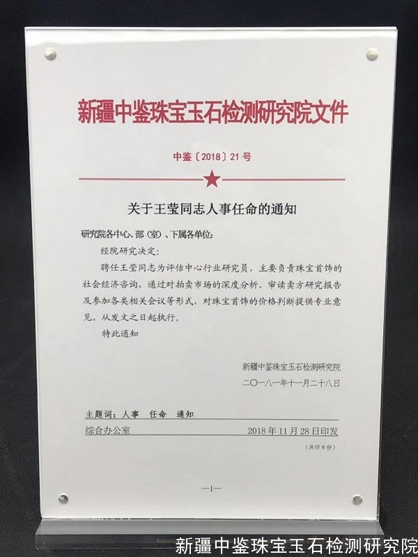 我院鼓励员工在珠宝专业领域的自我推广,保证完成我院日常工作的情况下,不干涉员工的行为,综合办公室积极配合员工在各大平台的认证的手续及资料。往广大员工坚守底线,传播正确的珠宝文化及检测技巧,努力提高我院公信力,为珠宝行业的健康、稳定发展舔砖加瓦。